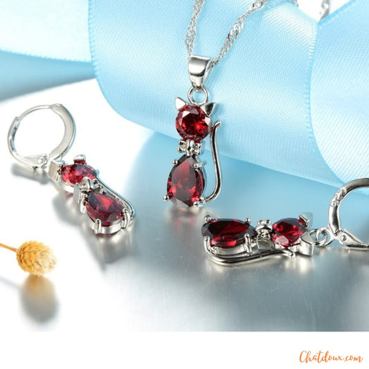 COLLIER FEMME AVEC BOUCLE D'OREILLE | COLLIER ARGENT FEMME AVEC PENDENTIF CHAT | ColCat™